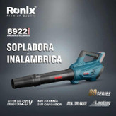 خزان روب شارژی رونیکس مدل 8922 یک دستگاه دمنده هوا می باشد که برای جمع کردن برگ و یا سطوح نازک برف مورد استفاده قرار میگیرد . بلوور شارژی 8922 رونیکس مجهز به موتور یونیورسال قدرتمندی است که با تولید سرعتی بالغ بر 15000 دور در دقیقه جریان هوایی برابر با 45 متر بر ثانیه به وجود می آورد. دستگاه از 12 تا 15 دقیقه بدون مکث و بدون داغ شدن روشن می ماند و به فعالیت خود ادامه می دهد که این قدرت، سرعت و مدت زمان عملکرد کاملا متناسب با تمام فعالیت هایی است که در بالا به آنها اشاره کردیم و از آنجایی که برای کارهای مختلف نیاز به شدت جریان هوای متفاوتی داریم، این محصول با قابلیت تنظیم بر دو سرعت متفاوت برنامه ریزی و تولید شده است. با استفاده از کلید تعبیه شده بر بدنه کاربر می تواند سرعت بلوور را مطابق با نیاز خود در محدوده حداقل سرعت 10000 دور در دقیقه و حداکثر سرعت 15000 دور در دقیقه تنظیم کند و به فعالیت مشغول شود. 8922 از یک باتری لیتیوم 20 ولت برای تامین انرژی خود و شروع فعالیت استفاده می کند. یک باتری مقاوم و بادوام با ظرفیت بالا که میان تمامی محصولات سری 89 مشترک است. به این معنی که تنها با داشتن یک باتری می توانید تمام ابزارهای سری 89 را فعال کرده و مورد استفاده قرار دهید. این باتری در کنار بعضی از محصولات سری 89 که در کنار کد محصول خود حرف K دارند عرضه می شود و برای سایر ابزارآلات این دسته که در بسته بندی خود باتری ندارند می توانید به صورت جداگانه باتری تهیه کنید. بدنه سبک وزن و جثه متناسب از بلوور شارژی 8922 ابزاری ارگونومیک ساخته است. روکش لاستیکی دسته با خاصیت ضدتعریق و ضدلغزش نیز از جمله ویژگی های ظاهری مهم این ابزار است که به کنترل هر چه آسان تر آن کمک می کند. به علاوه همراه این ابزار دو سری یا نازل یدکی متفاوت عرضه می شود که برای استفاده در محیط ها و شرایط مختلف به کار برده می شوند تا 11 مترمکعب بر دقیقه هوای خروجی دستگاه مطابق با خواست کاربر به سطح برخورد کند.