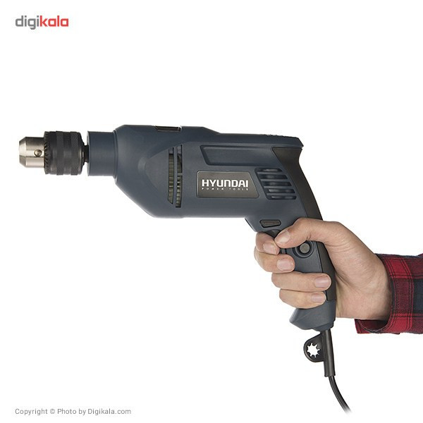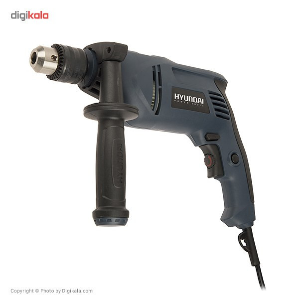 اگر قصد تهیهی یک دریل چکشی مناسب با قدرتی قابل قبول دارید، میتوانید از دستگاه فوق استفاده کنید. این دریل از توانی برابر 850 وات برخوردار است و از قابلیت کنترل سرعت گردش سود میبرد. میزان سرعت گردش این دستگاه توسط کلیدی چرخشی که روی شستی قرار دارد تنظیم میشود. بازهی سرعت چرخش این دستگاه 2700-0 دور بر دقیقه است. از دیگر مزایای این دستگاه میتوان به قابلیت چرخش ساعتگرد و پادساعتگرد آن اشاره کرد. سه نظام این دریل چکشی از نوع 13 میلیمتری آچارخور بوده و حداکثر قطر سوراخکاری آن در چوب، فلز و مصالح به ترتیب برابر 25، 13 و 13 میلیمتر است. با کمک این دستگاه میتوانید با دقت و تسلط بیشتری به کار خود بپردازید که این ویژگی به دلیل وجود دستهی کمکی و قفل سوییچ این دریل حاصل شده است. این دسته قابل تنظیم بوده و از قابلیت چرخش 360 درجه سود میبرد. دستگاه فوق با نام (HP853-ID) شناخته میشود و یکی از تولیدات شرکت «هیوندای» (Hyundai) است.