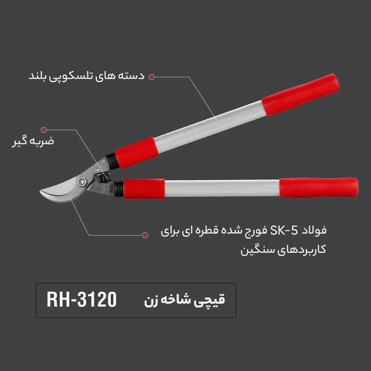 قیچیهای گوناگونی برای هرس کردن درختان و گیاهان ساختهشده است. شرکتهای مختلفی هم اقدام به تولید ابزار باغبانی کردهاند. «رونیکس» (Ronix) ازجمله شرکتهای شناختهشدهای است که تعدادی از محصولات خود را درزمینهی باغبانی عرضه میکند. یکی از این وسایل باغبانی، قیچی شاخهزن مدل RH-3120 است. تیغهی 8 سانتیمتری این محصول از جنس فولاد ساخته میشود. دستههای این مدل را بهصورت تلسکوپی طراحی کردهاند و از جنس آلومینیوم ساختهشده است. طول دستهها در حالت عادی 60 سانتیمتر و پس از باز کردن قفل تلسکوپی تا 90 سانتیمتر افزایش مییابد. برای بریدن شاخهی درختان قیچی مدل RH-3120 کاربردی مناسب دارد. دستهی تلسکوپی این محصول در بریدن شاخههایی که در ارتفاع بالاتر قرار دارند، کمک زیادی میکند. اگر برای هرس و رسیدگی به درختان خود به دنبال چند ابزار باکیفیت هستید، قیچی شاخه زن رونیکس را به شما پیشنهاد میکنیم.