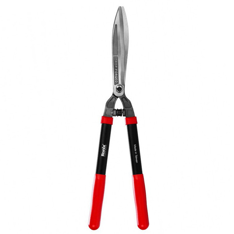 قیچی شمشاد زن مدل rh-3110 رونیکس، یک قیچی هرس باغبانی 60.5 سانتی متری با تیغههای فولادی بسیار تیز و برندهی کنگره دار به طول 22 سانتی متر است. این ابزار باغبانی، به روش دراپ فورج تولید شده و به گونهای طراحی و تولید شده تا برای بریدن شمشادها و حتی بوتههای کمپشت مناسب باشد. این قیچی باغبانی رونیکس، مجهز به دستهی ارگونومیک مخصوص از جنس ABS یا پی وی سی سافت است که با مقاومت بالای خود، برای جلوگیری از خستگی دست شما در فعالیتهای دراز مدت بسیار مناسب است. این دسته مجهز به ضربه گیر لاستیکی مقاوم است که از فرسایش تیغه در کارایی های طولانی مدت جلوگیری خواهد کرد.