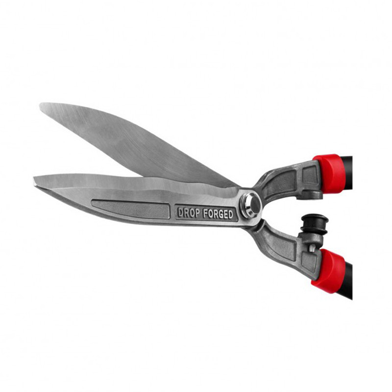 قیچی شمشاد زن مدل rh-3110 رونیکس، یک قیچی هرس باغبانی 60.5 سانتی متری با تیغههای فولادی بسیار تیز و برندهی کنگره دار به طول 22 سانتی متر است. این ابزار باغبانی، به روش دراپ فورج تولید شده و به گونهای طراحی و تولید شده تا برای بریدن شمشادها و حتی بوتههای کمپشت مناسب باشد. این قیچی باغبانی رونیکس، مجهز به دستهی ارگونومیک مخصوص از جنس ABS یا پی وی سی سافت است که با مقاومت بالای خود، برای جلوگیری از خستگی دست شما در فعالیتهای دراز مدت بسیار مناسب است. این دسته مجهز به ضربه گیر لاستیکی مقاوم است که از فرسایش تیغه در کارایی های طولانی مدت جلوگیری خواهد کرد.