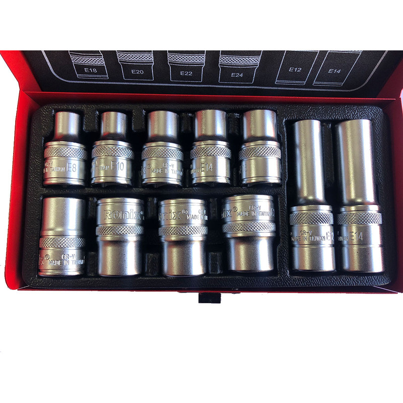 جعبه بکس 11 پارچه Ronix مدل RH-2694 از کروم وانادیوم ساخته شده که علاوه بر مقاومت بالا قابلیت ایجاد گشتاورهای بالا را ایجاد میکند. همچنین بکسهای این مجموعه دارای سوکت عاجدار با پرداخت سطح مات میباشند. این جعبه دارای سایزهای مختلف و بسیار کاربردی است که برای انجام فعالیتهای مختلف کاربرد دارد. تمام این مجموعه در کیف فلزی محکم و مقاوم نگهداری میشود که برای حمل بسیار آسان است. این بکس ستارهای برای باز و بسته کردن گل پیچهای ستارهای طراحی شده است.این مجموعه حاوی 11 عدد بکی ستاره ایی با درایو 1/2 می باشد .این مجموعه حاوی 9 عدد بکس کوتاه به شماره های E8,E10,E12,E14,E16,E16,E18,E20,E22,E24 و دو عدد بکس بلند یه شماره های E12,E14 می باشد . این مجموعه ساخت کشور تایوان می باشد .
