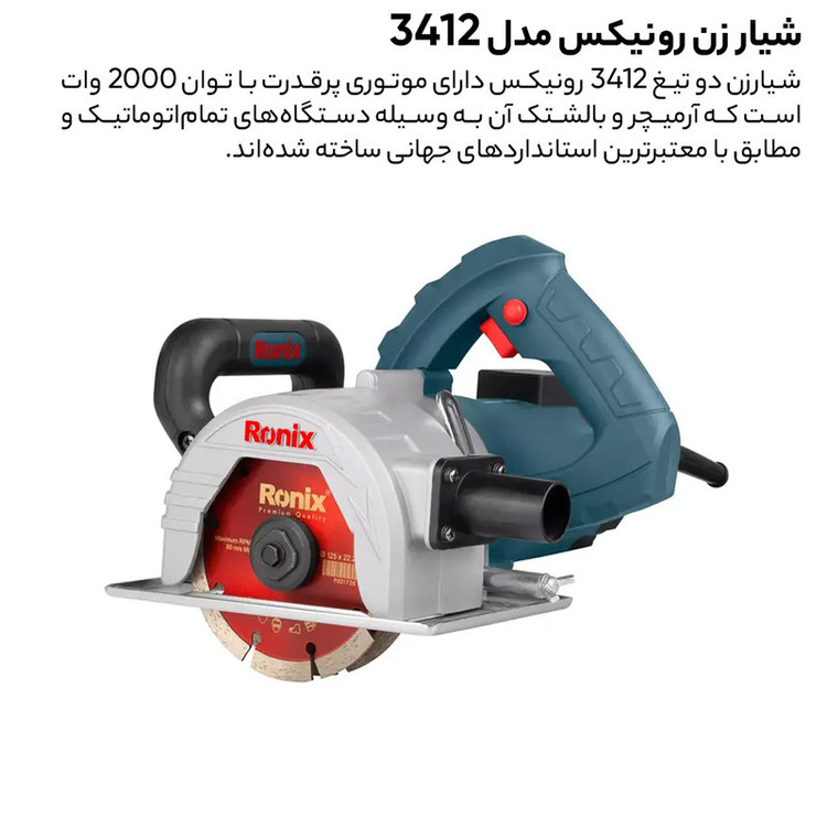 موتور متشکل از آرمیچر و بالشتک تولید شده توسط دستگاه های تمام اتوماتیک تحت استاندارد CEو بلبرینگ های ضد غبار با کیفیت جهت افزایش طول عمر دستگاه و کلید ضد غبار با مکانیزم قفل کن جهت استفاده بلند مدت از دستگاه تحت استاندارد TUV.و همچنین گیربکس و گارد صفحه آلومینومی با طراحی منحصر به فرد با مکانیزم خروج ذرات در حین عملکرد دستگاه و شیار زن دو تیغ برش دقیق و با کیفیت و همچنین طراحی بدنه سبک و کوچک برای کاهش خستگی در کاربری طولانی مدت ، این دستگاه دارای دسته D شکل در قسمت جلوی دستگاه برای افزایش کنترل پذیری و قابلیت مانور بالا. و قابلیت تنظیم عمق و پهنای برش و دارای Soft Start جهت راه اندازی مطمئن و افزایش ایمنی کاربر این دستگاه دارای 2 عدد صفحه گرانیت بر رایگان و دارای کیف BMC مقاوم و ضد ضربه می باشد